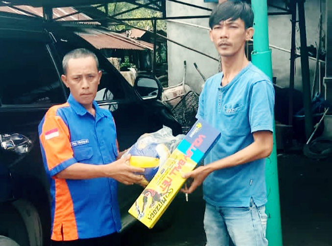 Bantuan itu diterima langsung perangkat desa yaitu Dian Elpansa (40) dan perwakilan anggota Karang Taruna Wijaya Leonardo (23), Senin (21/03/2022).