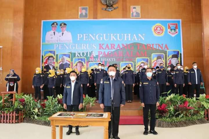 PAGARALAM, MS – Walikota Pagaralam, Alpian Maskoni langsung melakukan pengukuhan Karang Taruna Kota Pagaralam.