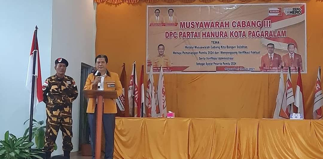 Musyawarah Cabang (Muscab) Partai Hanura kota Pagaralam, yang digelar di Pagaralam (14-06-2021), dengan tema “melalui musyawarah cabang kita bangun solidaritas menuju pemenangan pemilu 2024 dan menyongsong verifikasi faktual serta verifikasi administrasi sebagai syarat peserta pemilu 2024”.