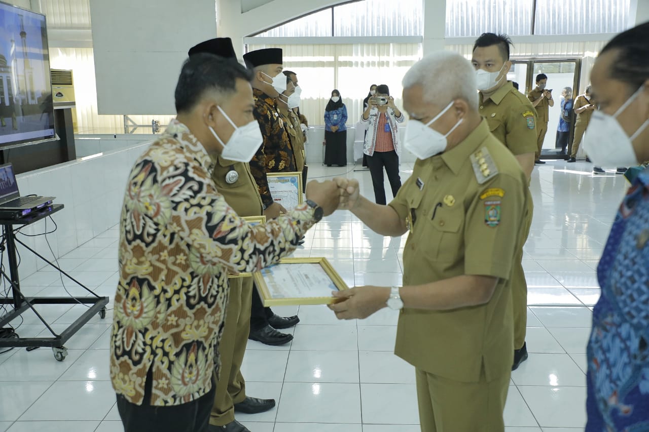 ASAHAN, MS – Bupati bersama unsur Forkopimda Kabupaten Asahan mengikuti Peringatan Hari Anti Narkotika 2021 Internasional Secara Virtual. Acara tersebut dipusatkan di Aula Melati Kantor Bupati Asahan, Senin (28/06/2021).