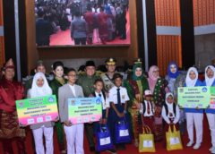 Launching program pro rakyat ini ditandai dengan penyerahan paket bantuan seragam gratis kepada siswa penerima oleh Gubernur Sumsel, H Herman Deru didampingi Kapolda Sumsel. Irjenpol Firli dan Walikota Lubuklinggau, H SN Prana Putra Sohe.