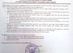 “Surat edaran ini sudah kita tempel di sejumlah tempat pertokoan atau pelayanan publik lainnya. Ini kita lakukan bertujuan untuk memutus mata rantai penyebaran covid -19 di Bengkulu Selatan,” pungkas Gusnan. (bajul)