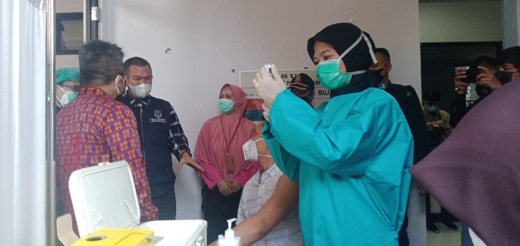 PAGARALAM, MS – Walikota Pagaralam, Alpian Maskoni meninjau langsung pelaksanaan Vaksinasi tahap ke-3 bagi tenaga kesehatan, bertempat di Rumah Sakit Umum Daerah (RSUD) Besemah Kota Pagaralam, Jum’at (6/8/21).